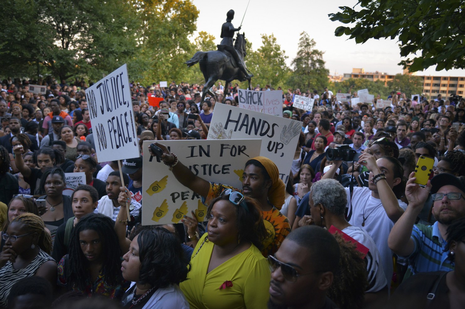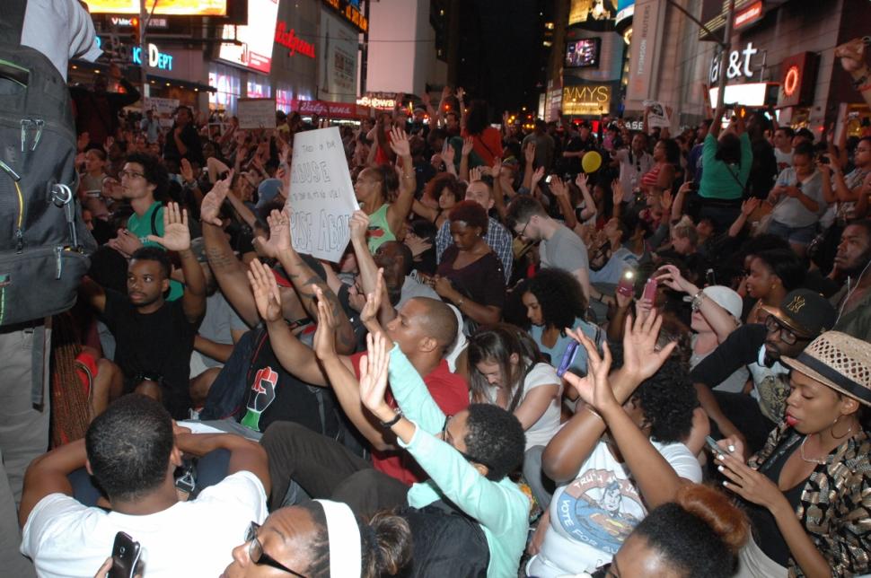 In response to the events in Ferguson, MO, solidarity protests have happened across the country with protesters displaying the “Don’t Shoot” posture that has become symbolic of the circumstances surrounding Mr. Brown’s death: